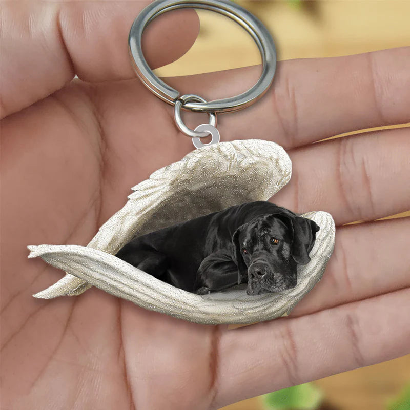 Sleeping Angel Acrylic Keychain Black Great Dane