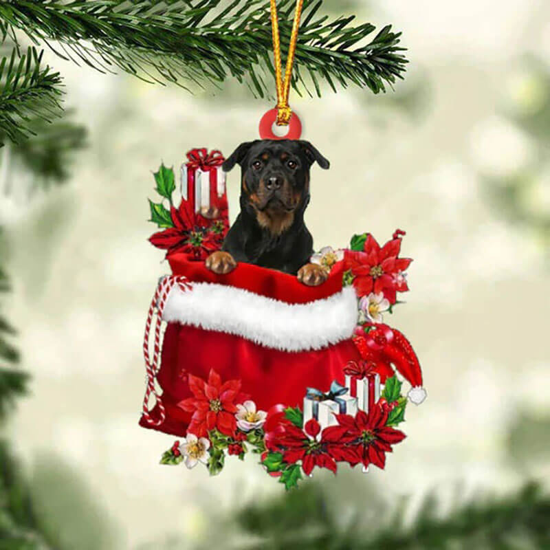 Rottweiler In Gift Bag Christmas Ornament GB053