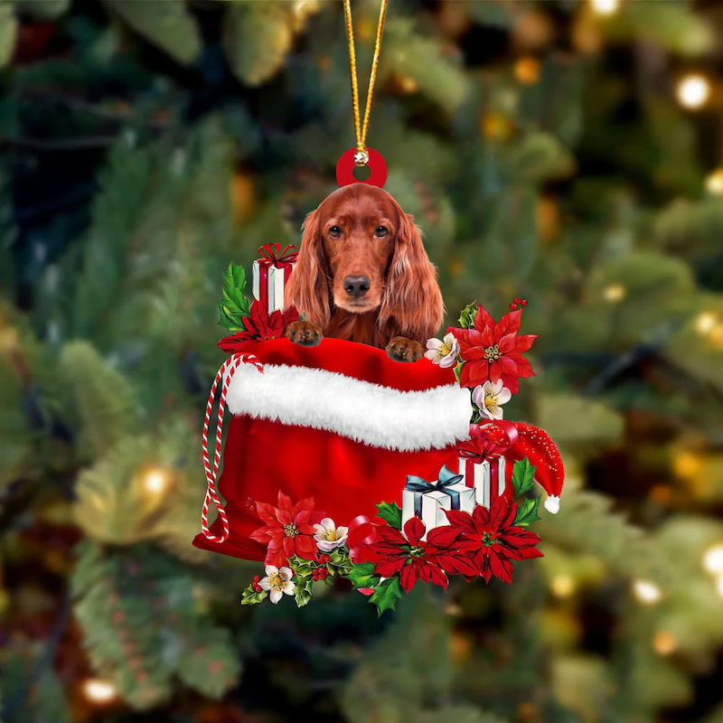 Irish Setter In Gift Bag Christmas Ornament GB018