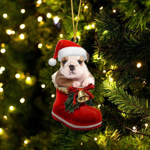 American Bulldog In Santa Boot Christmas Hanging Ornament SB174