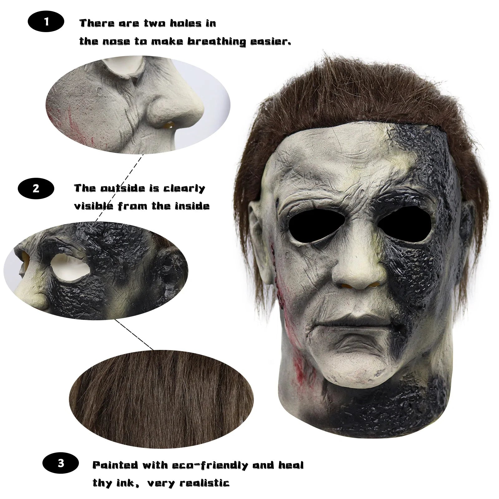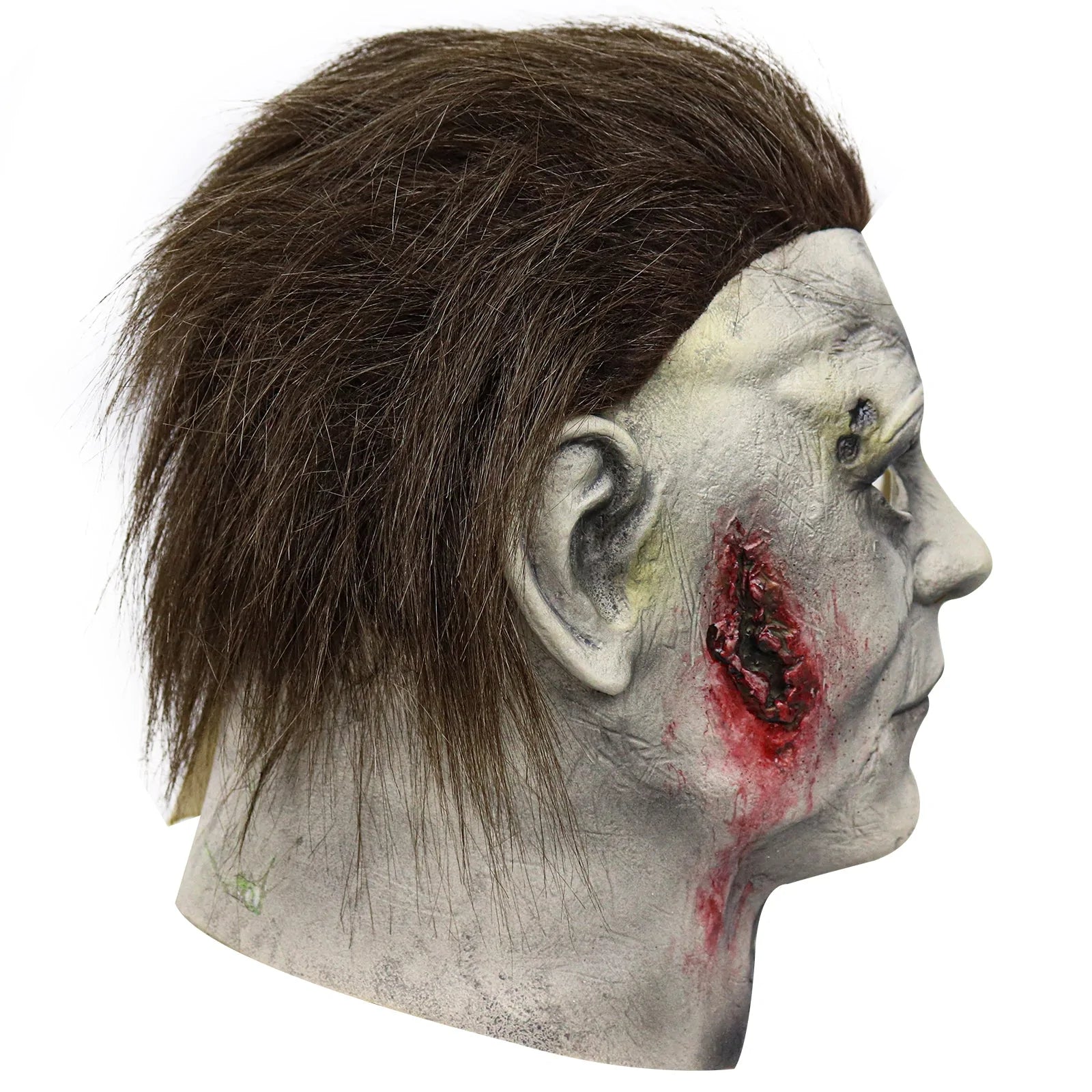 From the way the never-healing knife wounds on the side of his face curve, to the gentle yellowing of the many contusions and road burns, we have captured Michael Myers in magnificent detail. Sporting a freshly bleeding cut on the right side of his face, you can almost believe that he is there right in front of you! Fortunately, that is not the case, but still, the gruesome mask is very close.
