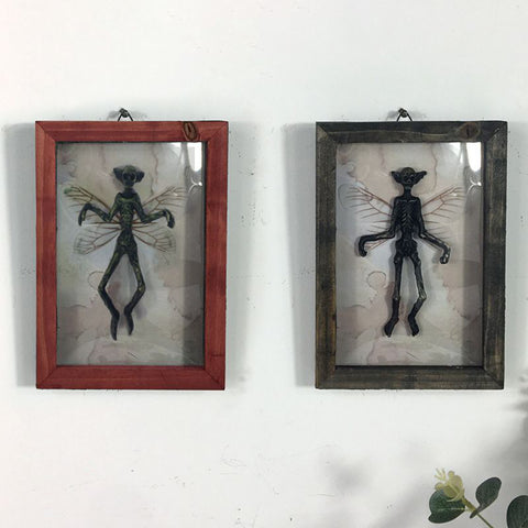 High-quality Materials: The fairy's body boasts a dried, decaying skin effect that adds to its macabre charm. Its delicate wings are crafted from crystal-clear epoxy resin, delicately colored with pearlescent pigments, creating an otherworldly shimmer.