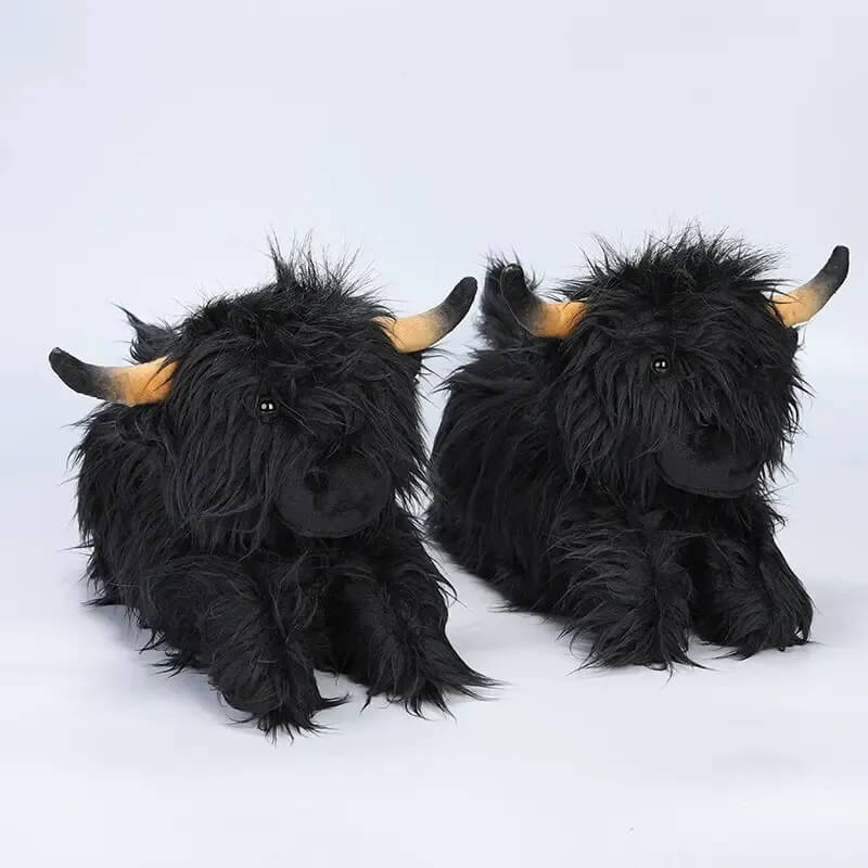 These scottish highland cattle slippers with a unique animal shape design,like a real highland cow. Long horns, fuzzy tails,can be matched with cute socks, easy to attract others' attention.