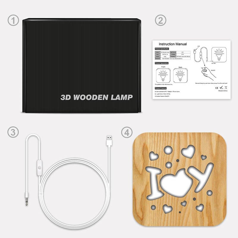 • Product accessories: Wooden night light + 1 USB cable + 1 manual + 1 (color box packaging)