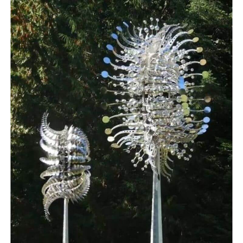 WEATHER RESISTANT: Our kinetic metal wind spinners come with multi-color brushed coat finishes and a stable stake at the base, which is built to withstand all weather, sturdy and durable for windy days.