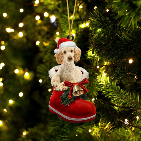 Poodle Apricot In Santa Boot Christmas Hanging Ornament SB038