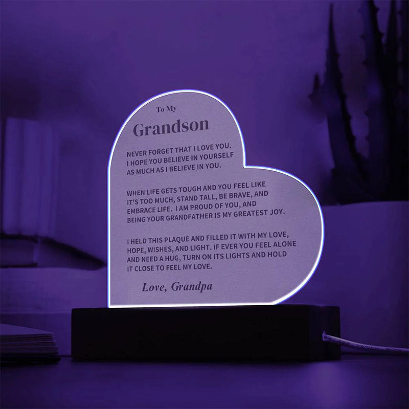 To My Grandson - From Grandpa - Never Forget That I Love You - LED Heart Acrylic Plaque