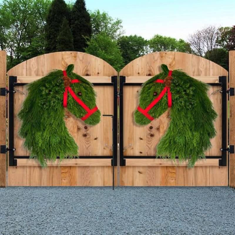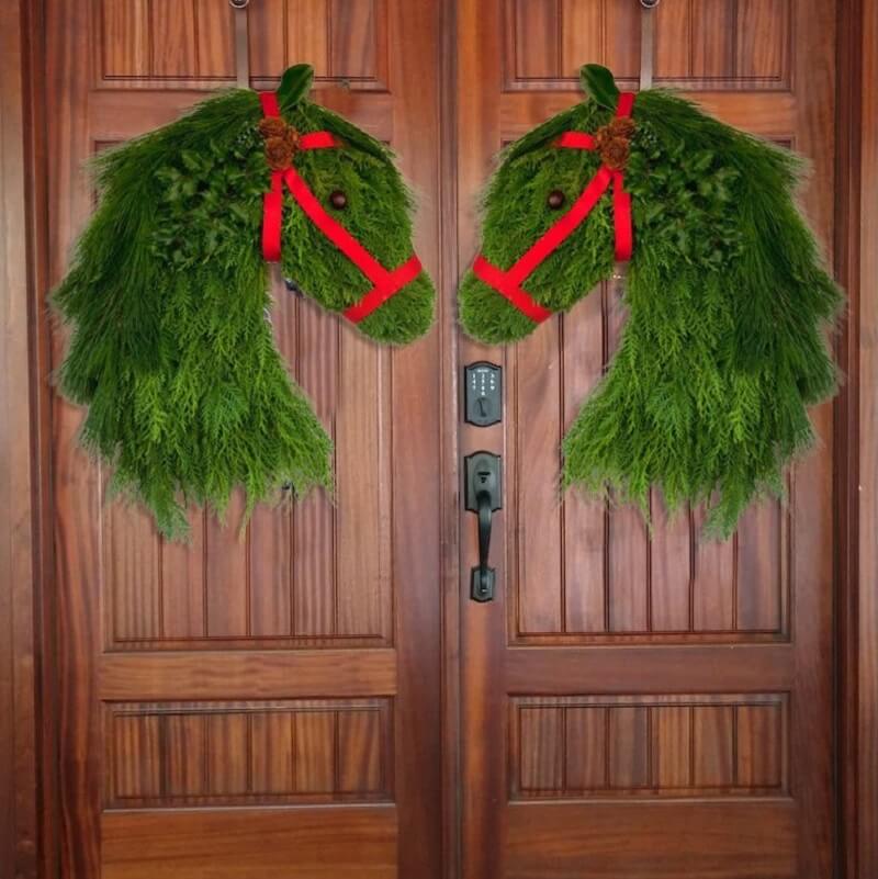 🏠 Show off your holiday equestrian style with these handmade double-horsehead Christmas wreaths, show this all winter. The Christmas decorations are great, but they can be hung throughout the winter.