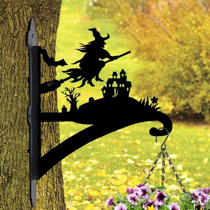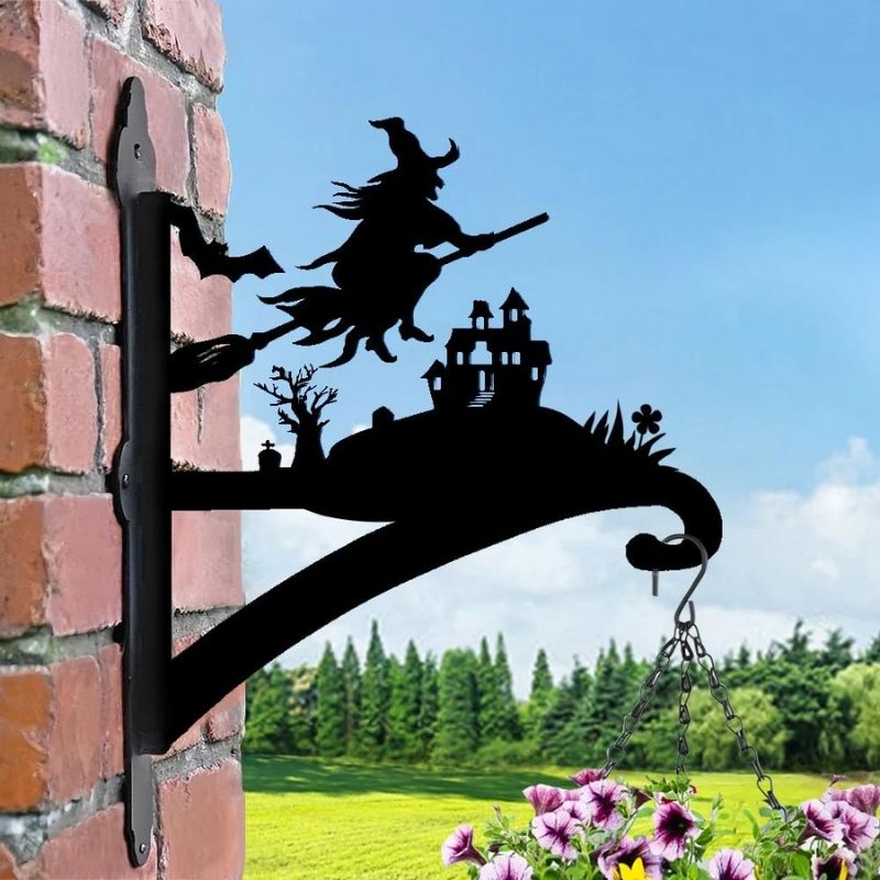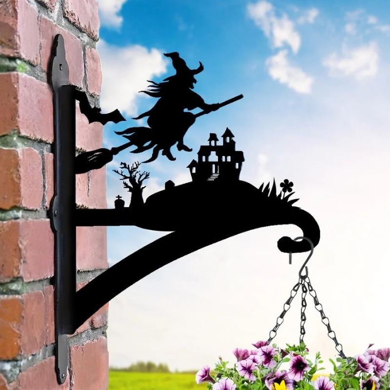 Witch and Haunted Castle Metal Hanging Bracket Plant Stand PS174